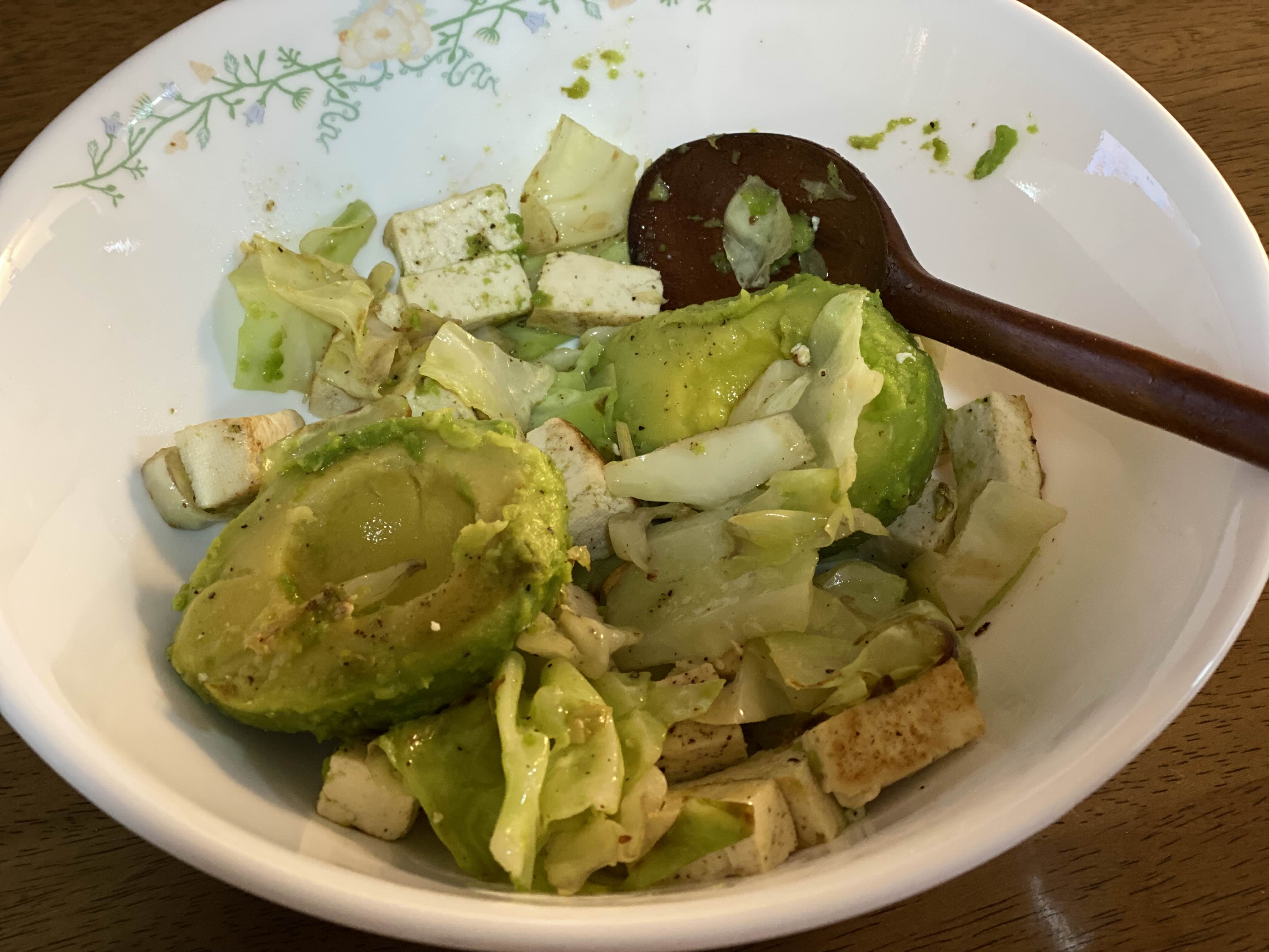 7시 양배추,두부,아보카도,현미유,소금,후추 넣고 볶아먹음