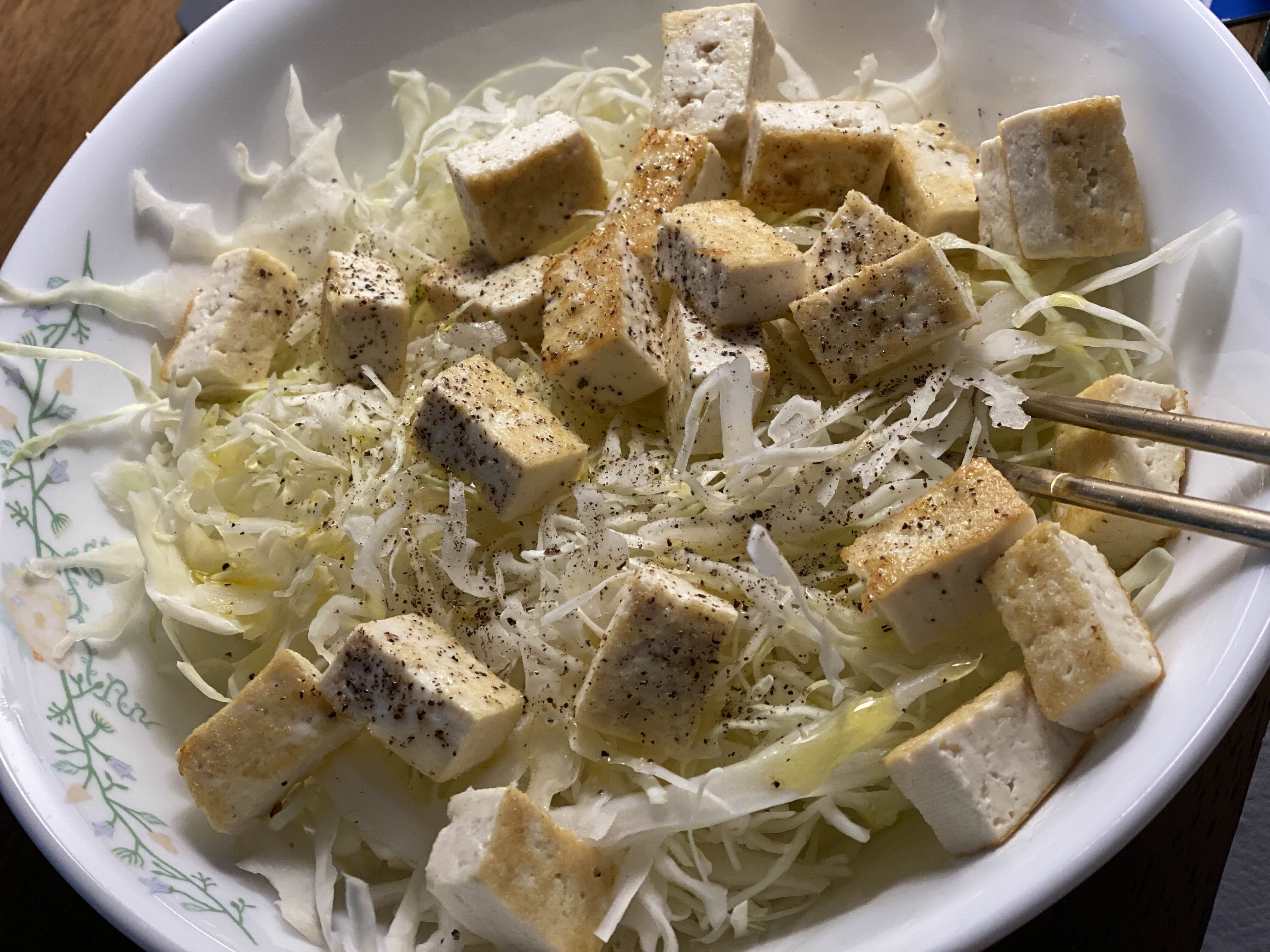 5시 단쉐, 양배추채에 기름에구운두부+올오+후추+소금 넣고 한 대접